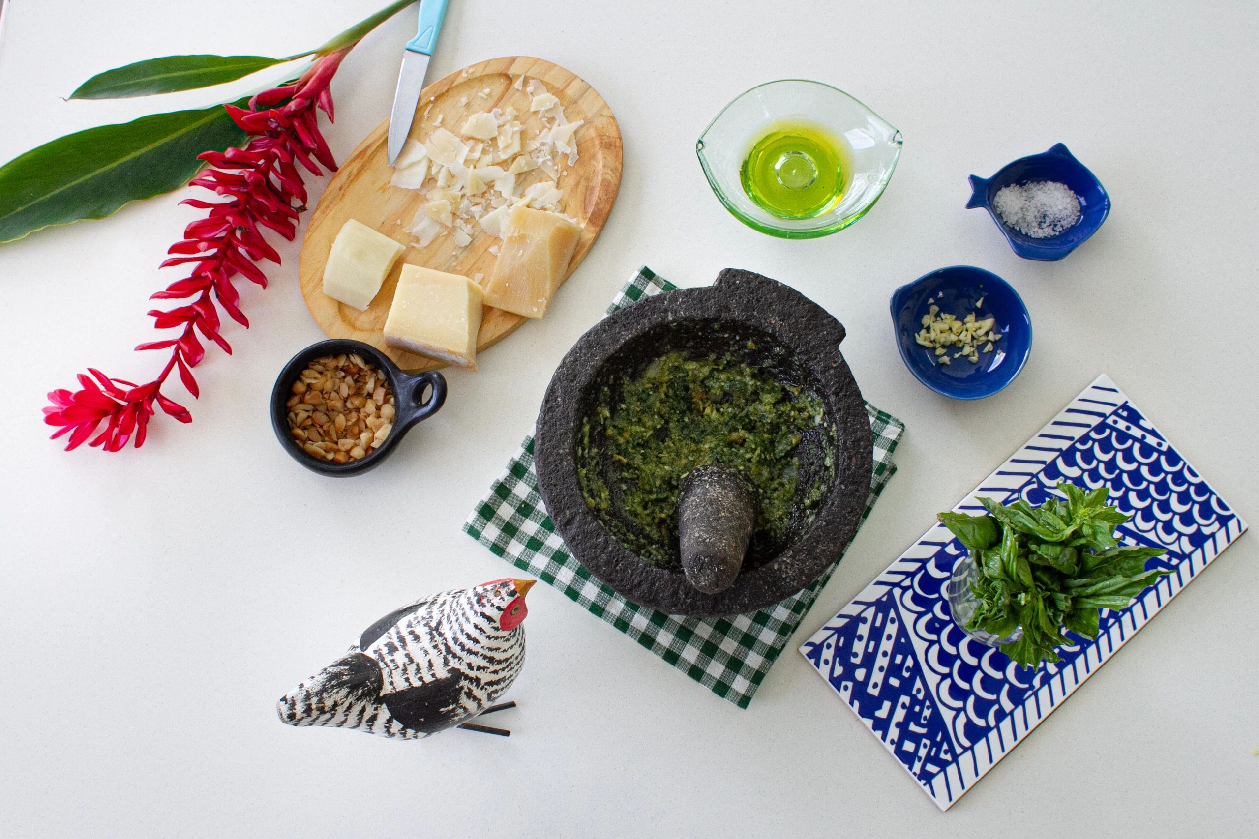 albahaca, queso parmesano, queso pecorino, nuez de macadamia, aceite de oliva extra virgen, ajo, sal marina